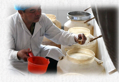 占盡了天時地利的四門醋,得到了民間“家釀深藏度春秋,紅杏由來不出墻”的美譽。其實,在四門鎮(zhèn),幾乎人人都是釀醋能手。釀造時大多以祖方百味中藥踩曲,用麥麩皮作主料,加入雜糧和藥渣,再添上泉水或井水,入陶缸發(fā)酵。
