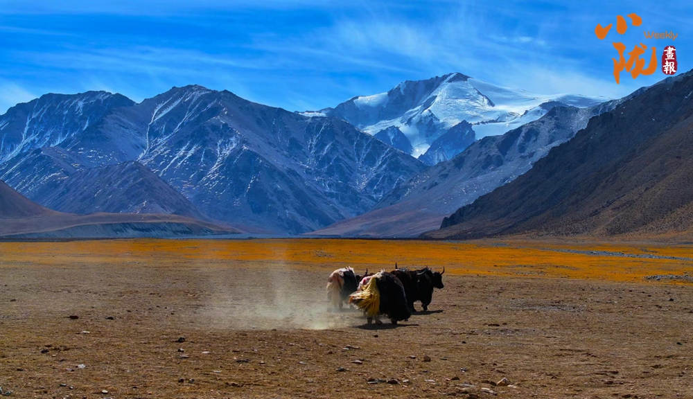初秋,草香撲面而來,綠草漸被秋風染黃,與雪山、藍天繪成一幅層次鮮明的風景畫。