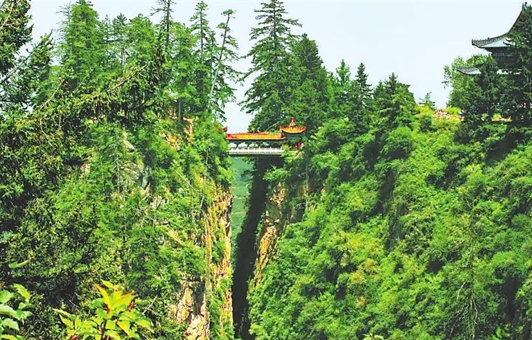 其實(shí),石門山系小隴山林區(qū)的余脈,蘊(yùn)藏著得天獨(dú)厚的植物資源,有我國南北的各種野生植物百余種,其中有很多還是園林中的珍品。據(jù)景區(qū)資料得知,石門山由北峰、麒麟峰、南峰構(gòu)成。北峰建有無量殿、靈官殿、文昌宮、三清殿、鐘樓。麒麟峰建有圣母宮、三肖殿、三仙庵。南峰峰頂建有玉皇閣和三官殿。這些殿宇大多為明清重修,依山就勢,錯落有致,風(fēng)格纖巧,玲瓏俊秀,最小的殿宇僅有5至6平方米,在石門山的萬綠叢中時隱時現(xiàn),猶如一幅濃淡相宜,層次分明的水墨畫,形成了石門山特有的風(fēng)韻。