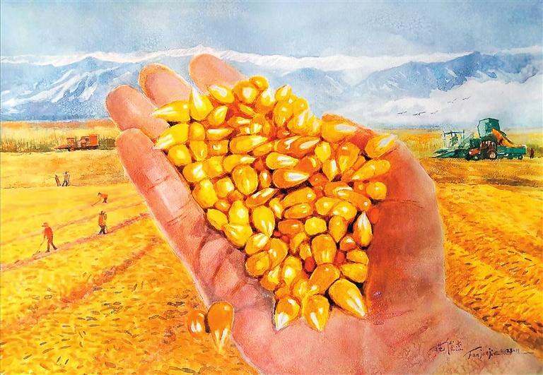 原標(biāo)題:祁連山下豐收忙〔水彩畫〕