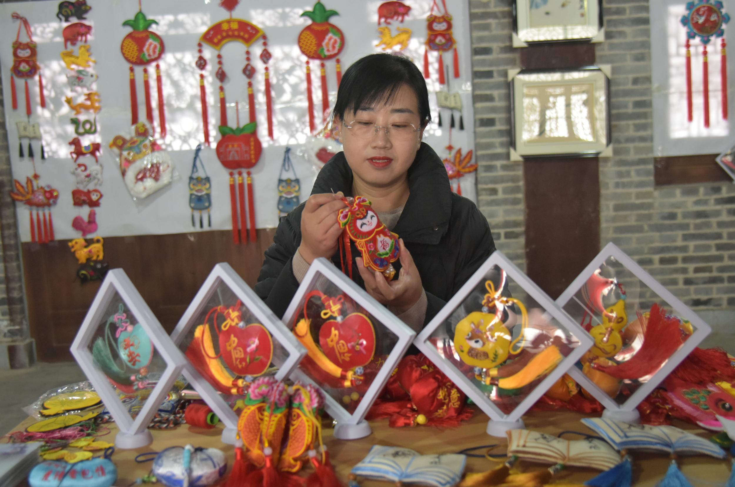 除了剪紙,鎮(zhèn)原縣香包、刺繡、書法等傳統(tǒng)文化藝術(shù)氛圍也很濃厚,深受廣大群眾喜愛。在文化一條街,十幾家書畫、香包、刺繡工作室緊挨,組成了一條文化長(zhǎng)廊,除了銷售文創(chuàng)產(chǎn)品外,還承擔(dān)著非遺文化傳承和技藝培訓(xùn),熱鬧而又成氣候。“作為一名非遺傳承人,不僅要把自己的香包刺繡產(chǎn)品設(shè)計(jì)好、做精致,更重要的是要把這門技藝教給更多的人,讓香包、刺繡這門技藝更好地傳承下去。”慶陽(yáng)香包刺繡非物質(zhì)文化遺產(chǎn)傳承人任艷艷說(shuō),自己在文化一條街已經(jīng)開店近十年了,帶出了很多巧媳婦巧婆婆,還不時(shí)受邀在縣內(nèi)外進(jìn)行培訓(xùn)指導(dǎo)。