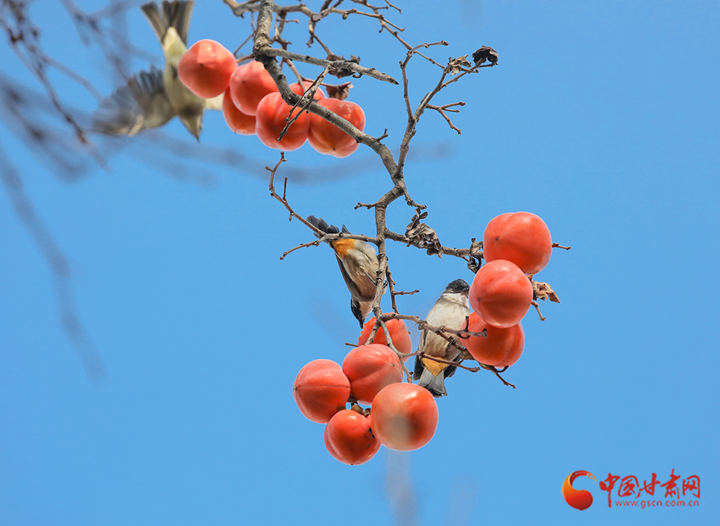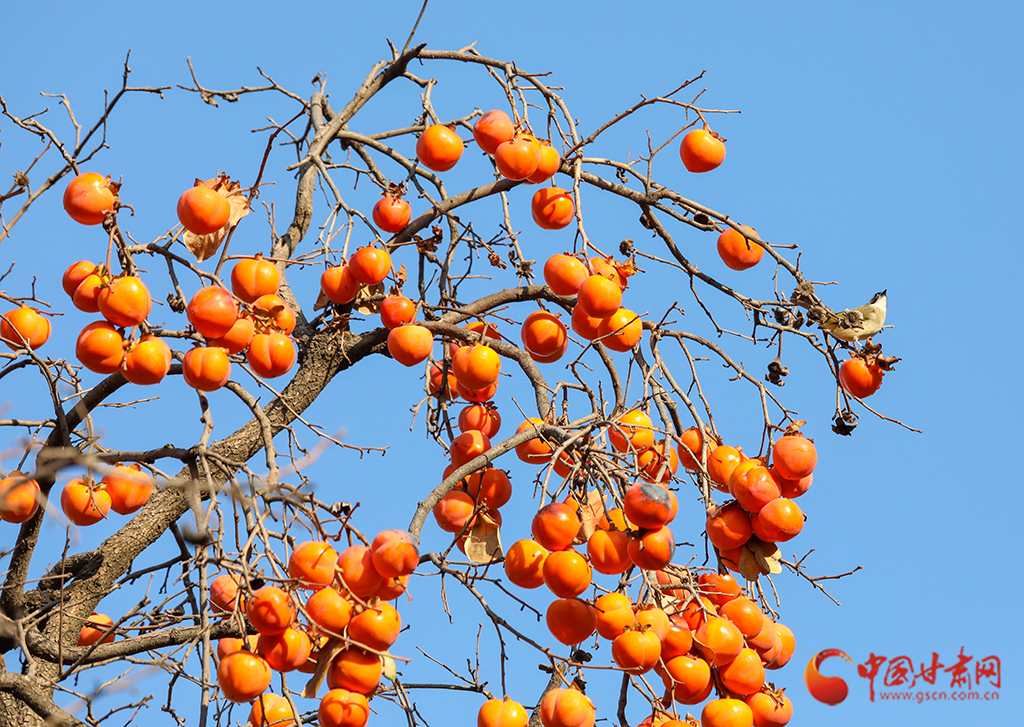 秋去冬來,萬物沉寂。在平?jīng)龀缧?,柿子樹上掛滿了果實(shí),又是一年柿子紅。