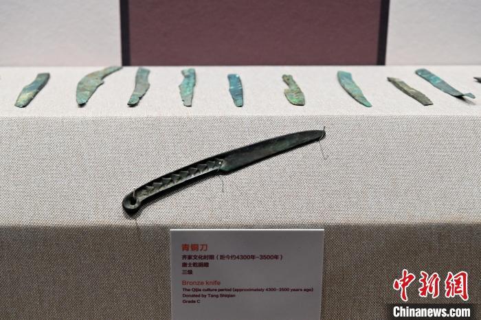 11月27日,甘肅省臨夏州廣河縣齊家文化博物館展出的青銅刀。 九美旦增 攝