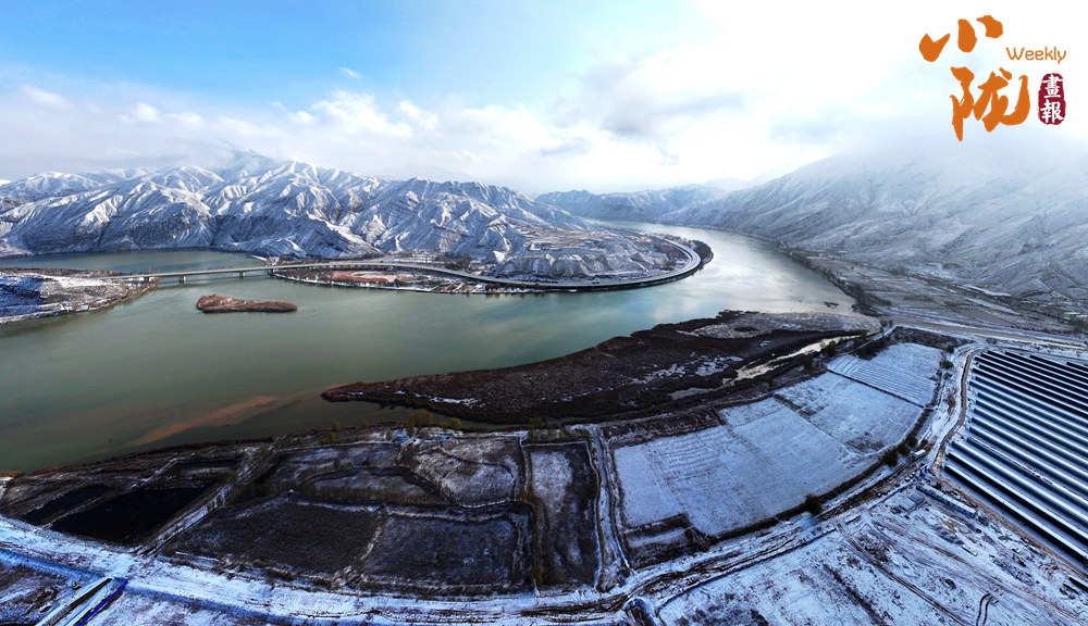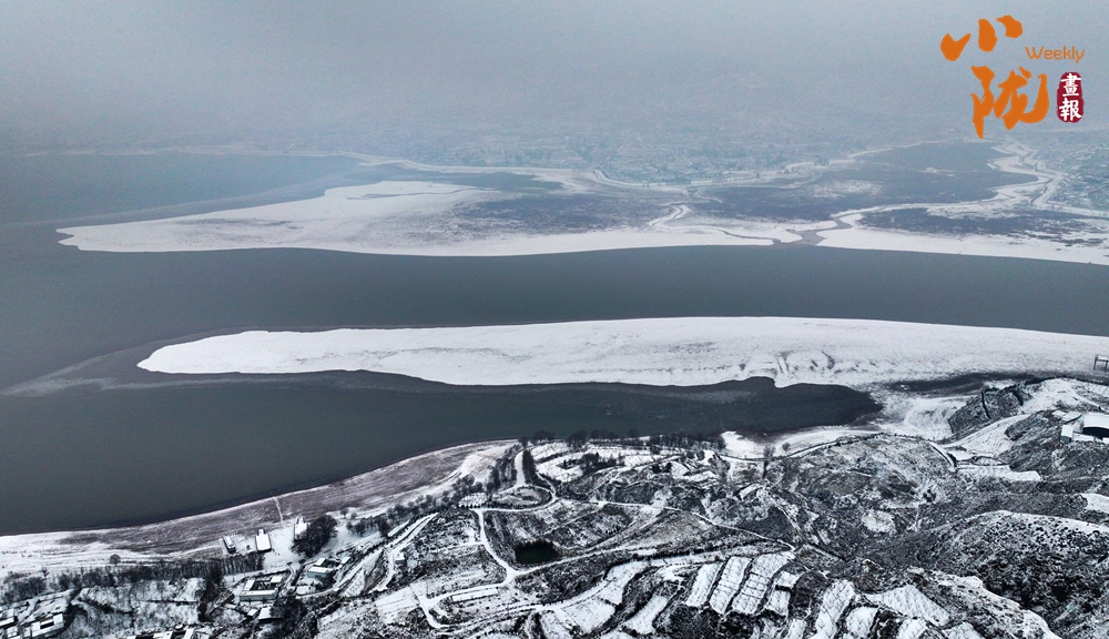 黃河水在峽谷中緩緩流淌,原本色彩斑斕的連綿群山,被皚皚白雪溫柔覆蓋,更顯層次,呈現(xiàn)出一幅壯美的山河畫(huà)卷。