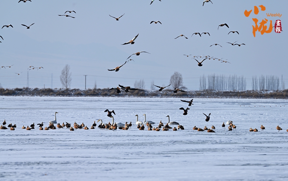 萬(wàn)物復(fù)蘇,臨澤黑河濕地白天鵝、赤麻鴨等棲息覓食,構(gòu)成了一幅和諧的生態(tài)美景。