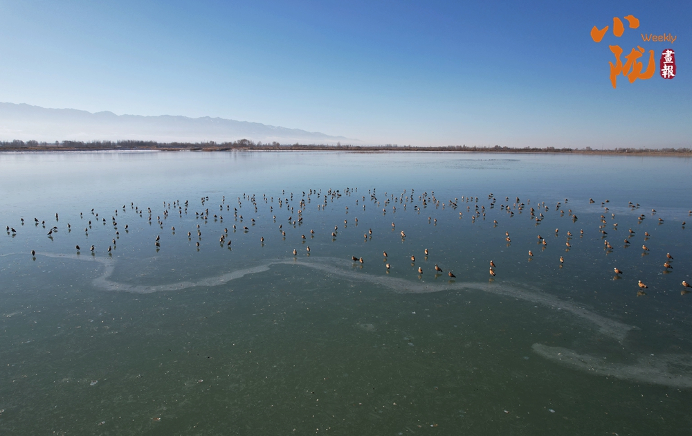 成群的候鳥(niǎo)在淺灘上悠閑地覓食、嬉戲,顯得格外的艷麗,為臨澤的冬日增添了一抹靈動(dòng)與和諧的氣息。