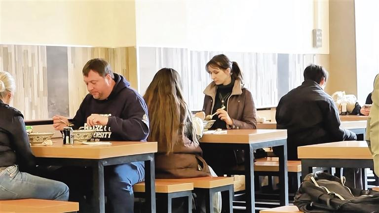 雖然身處異國(guó)他鄉(xiāng),但這家蘭州牛肉拉面的制作工藝依舊傳承著蘭州的傳統(tǒng),每一碗面都蘊(yùn)含著蘭州的匠心,每一口都是蘭州的味道。據(jù)牟陽(yáng)介紹,別看這家店的拉面師傅是個(gè)外國(guó)人,但拉面的手法非常嫻熟,聽(tīng)說(shuō)是專門(mén)從蘭州拜師學(xué)藝歸來(lái)的。“師傅現(xiàn)場(chǎng)手工拉面,面條口感很棒,牛肉的分量也很足。”每次和同學(xué)朋友來(lái)這里吃面,地道的蘭州味道總會(huì)讓她贊不絕口。大口吃面,大塊吃肉,大碗喝湯,碳水帶給海外游子的快樂(lè),在這一碗“牛大”里全都可以實(shí)現(xiàn)。