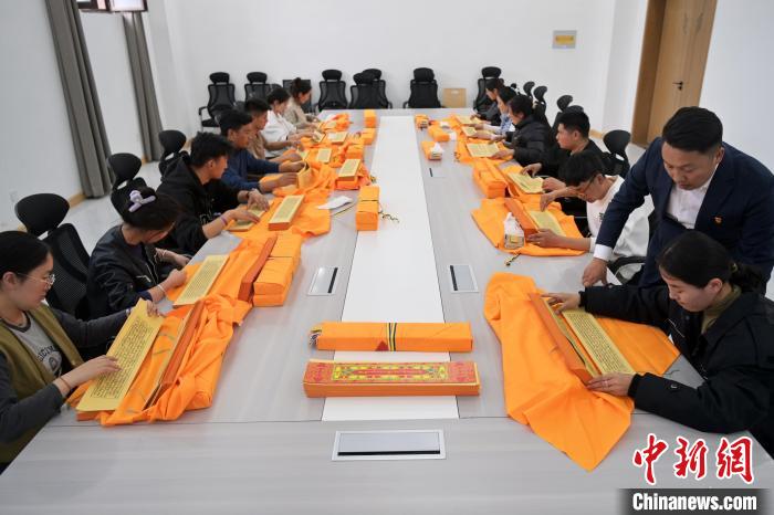 2月27日,在甘肅甘南藏族自治州碌曲縣益西達吉科技有限公司內,工作人員正在進行藏文古籍數(shù)字化相關工作。該公司主要從事民族古籍數(shù)字化建設和古籍文獻數(shù)據(jù)庫建設,自2019年以來,承擔西藏、四川、甘肅等省區(qū)的藏文古籍數(shù)字化項目。圖為工作人員對藏文古籍(木刻版)做數(shù)字化工作前期準備。中新社記者 九美旦增 攝