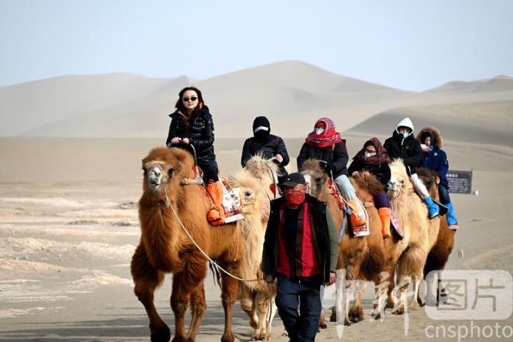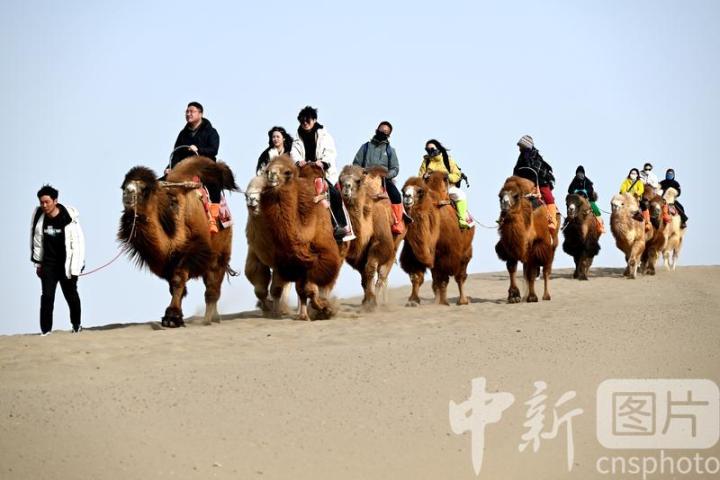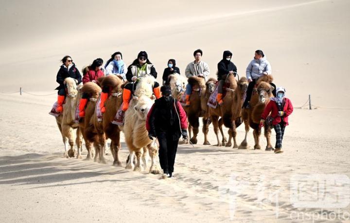 2025年3月2日,游客在甘肅省敦煌市鳴沙山月牙泉景區(qū)游覽。從3月1日開始,至3月31日,甘肅省敦煌市鳴沙山月牙泉景區(qū)、世界文化遺產(chǎn)玉門關(guān)遺址、敦煌雅丹世界地質(zhì)公園三大市屬景區(qū)推出門票半價優(yōu)惠政策,吸引游客走進(jìn)敦煌,欣賞大漠風(fēng)光,體驗絲路風(fēng)情。中新社發(fā) 張曉亮 攝