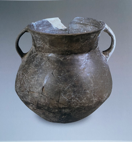 籃紋雙耳灰陶罐(寧縣博物館藏)