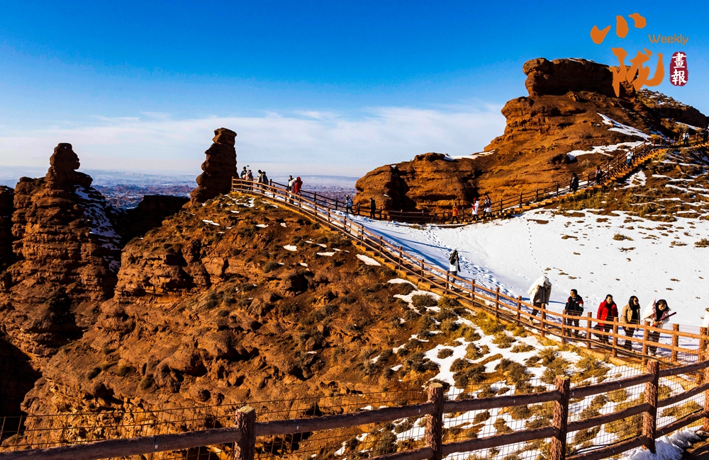 紅色丹霞被春雪覆蓋,在陽光的照耀下,紅色山崖層層疊疊、縱橫交錯(cuò),皚皚白雪點(diǎn)綴其中,唯美壯觀。平山湖的山,就在這樣悄無聲息的雪中,幻化成了氣勢(shì)磅礴的丹霞,綿延千里,浩瀚無邊。