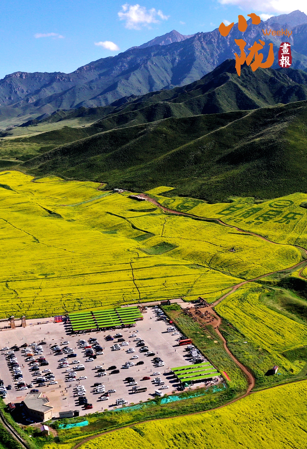 盛夏時(shí)節(jié)的民樂縣扁都口,放眼望去,滿山蒼翠欲滴,草木郁郁蔥蔥。這里海拔較高,氣候涼爽,耕地面積廣闊,適宜油菜、青稞的生長。由于地形高低起伏錯(cuò)落,大片的油菜花也隨著地形高低上下起伏,金黃一片,非常壯觀。