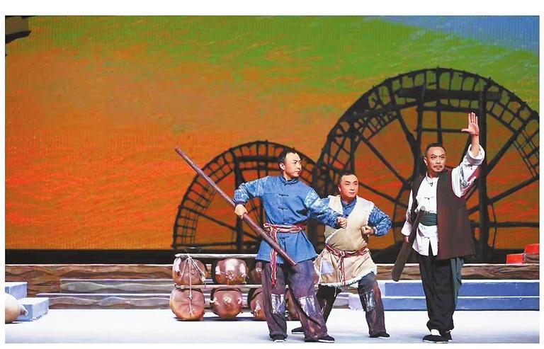 地域文化符號(hào)的創(chuàng)造性轉(zhuǎn)化,是該劇藝術(shù)創(chuàng)新的另一亮點(diǎn)。劇中,蘭州太平鼓、黃河水車等元素被巧妙融入劇情:太平鼓在“祭河神”的一場(chǎng)戲中既是祭祀道具,又成為鼓舞士氣的戰(zhàn)鼓;黃河水車則通過(guò)光影變幻,象征著時(shí)代的流轉(zhuǎn)與歷史的延續(xù)。這種將地域文化符號(hào)轉(zhuǎn)化為戲劇語(yǔ)言的嘗試,使作品在保持隴劇本體特征的同時(shí),獲得了更廣闊的審美空間。