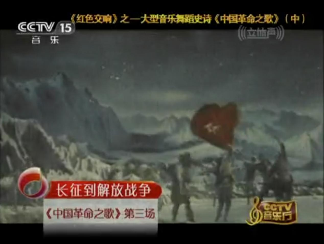 而在音樂與舞蹈的融合道路上,創(chuàng)作于1984年的大型音樂舞蹈史詩《中國革命之歌》,邁向了一種更為宏大的藝術(shù)形態(tài)。作品融舞蹈、音樂、朗誦與舞臺(tái)視覺于一體,以全景敘事回溯革命征程。其中第三時(shí)期的片段《紅軍不怕遠(yuǎn)征難》,以“雪山紅星”為核心意象,在交響樂、合唱與舞蹈的交織中,唱響了那段艱苦卓絕的歷程。