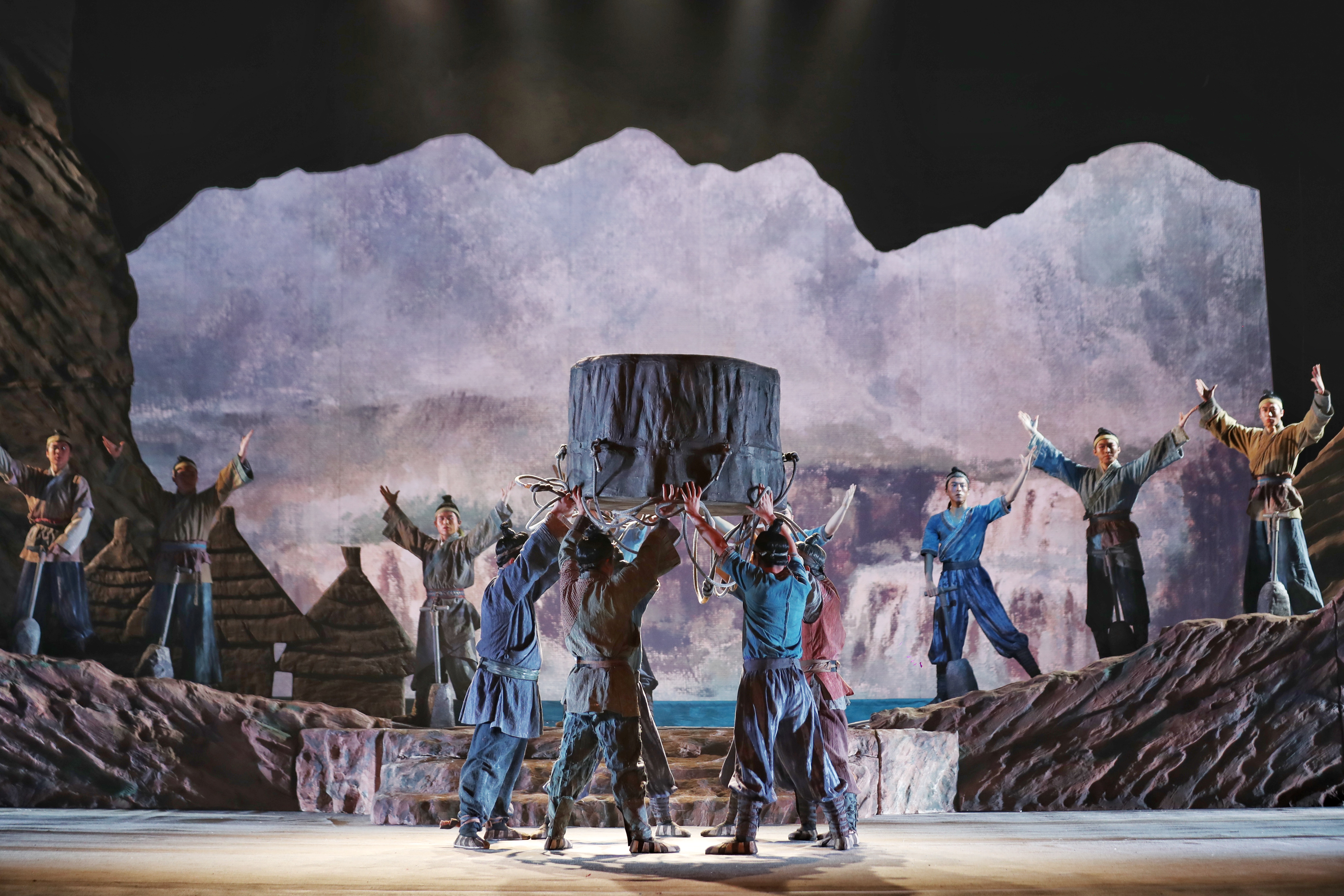 史書《尚書·禹貢》記載,大禹治水“導河于積石”。據(jù)考證,這里的“積石”就是甘肅省臨夏州積石山。在甘肅省文化和旅游廳全程指導下,甘肅省隴劇院歷時兩年精心籌備,主創(chuàng)團隊多次赴積石山縣采風,先后十六次易稿完成劇本創(chuàng)作。全體劇組人員本著“宏大的主題和民族精神高度統(tǒng)一,黃河文化和地域特色高度統(tǒng)一,呈現(xiàn)內(nèi)容和藝術樣式高度統(tǒng)一,立意挖掘和昭示未來高度統(tǒng)一”的創(chuàng)作要求,歷經(jīng)四個多月的緊張排練,將“大禹治水源頭”故事搬上舞臺。