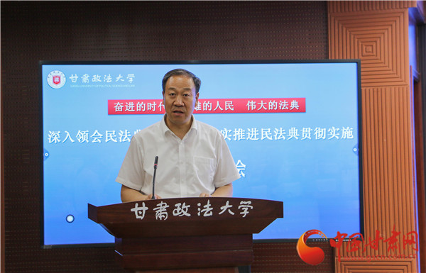 王成勇就甘肅省更好地推進民法典宣傳普及和貫徹實施講了三點意見:一是要充分認識民法典頒布和實施的重大意義,這些重大意義要通過老百姓喜聞樂見的方式進行宣講,從而讓民法典真正走進千家萬戶,真正成為人民權(quán)益的“保障書”;二是要將學(xué)習(xí)宣傳好民法典作為當(dāng)前的一項政治任務(wù)抓緊抓好。要增強學(xué)習(xí)宣傳貫徹的政治自覺、思想自覺和行動自覺,要在全社會掀起學(xué)習(xí)貫徹民法典的熱潮,廣大黨員和領(lǐng)導(dǎo)干部要做學(xué)習(xí)、遵守、維護民法典的表率,把掌握和運用民法典作為履職盡責(zé)、推動工作的必備本領(lǐng)。三是要發(fā)揮高校和科研院所在民法典宣傳、研究方面的主力軍作用,特別是政法院校要積極參與到民法典宣講的陣營中,突出宣傳重點,創(chuàng)新宣傳形式,同時要高度重視民法典實施相關(guān)問題的研究,組織研究力量及早謀劃國家社科基金重大、重點項目選題的凝練和論證申報,力爭在民法典研究中發(fā)出甘肅最強音。