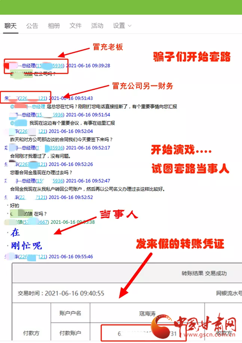據(jù)了解,6月16日上午9時20分左右,安寧區(qū)某公司財務人員岳先生收到一封由“公司股東”發(fā)來的電子郵件,在郵件中推送了一個新建的QQ工作群,岳先生沒有多想就加入了此群。不久后,詐騙分子在此QQ群中冒充該公司法人和另外一名財務人員對岳先生下達指令,要求其向?qū)Ψ街付ㄣy行賬戶轉(zhuǎn)賬合同款370.5萬元。
