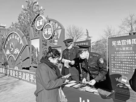12月3日,定西監(jiān)獄組織青年民警普法宣傳隊(duì)來到汽車站社區(qū)開展憲法宣傳進(jìn)社區(qū)活動。隊(duì)員向市民發(fā)放憲法手冊和宣傳彩頁,宣傳憲法內(nèi)容,強(qiáng)化市民的法治意識。