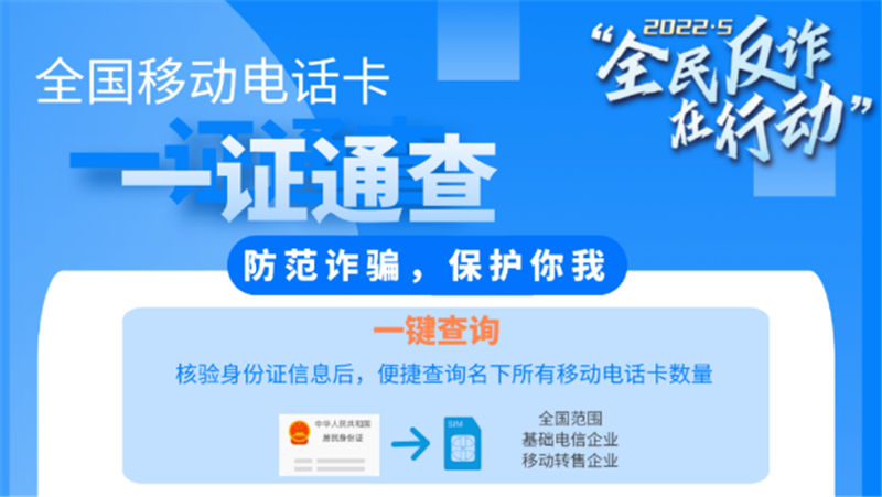 全國移動電話卡“一證通查”服務 處置涉詐高危電話卡7760余萬張