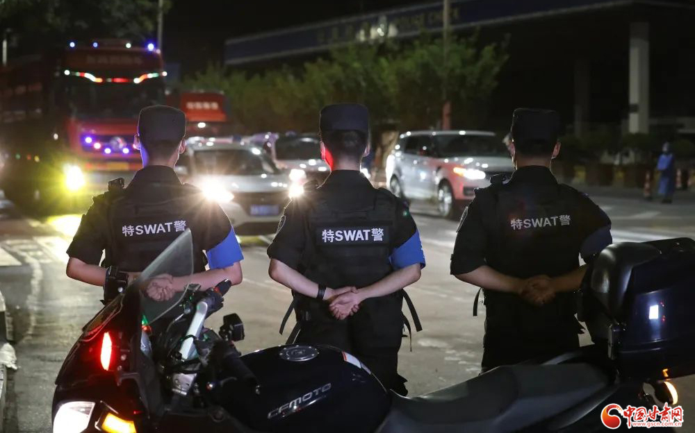城關(guān)公安快警發(fā)揮機(jī)動優(yōu)勢,在轄區(qū)各核酸采集點(diǎn)開展秩序維護(hù)安全守護(hù)等工作。楊 釗/攝