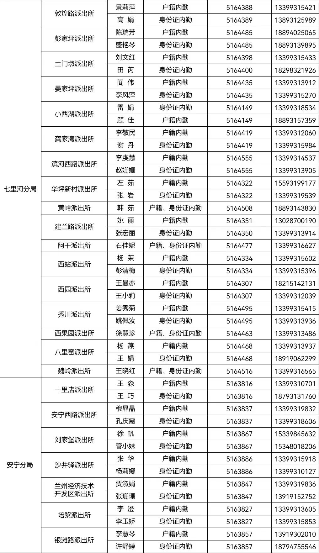 為切實(shí)滿足大量務(wù)工、經(jīng)商、就學(xué)人員陸續(xù)返鄉(xiāng)回家辦理戶籍、身份證業(yè)務(wù)的實(shí)際需要,今年春節(jié)期間(1月21日至27日),蘭州市公安局111個(gè)派出所戶籍窗口將為辦事群眾提供“網(wǎng)上辦理+預(yù)約服務(wù)”,有辦事需求的群眾請登錄“甘肅公安政務(wù)服務(wù)平臺”或撥打公布的電話提前預(yù)約辦理。