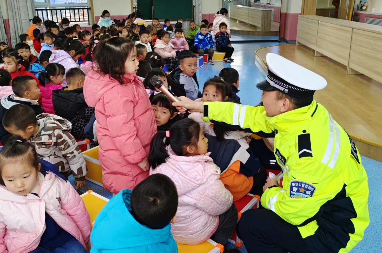 宣傳人員走進(jìn)幼兒園,普及交通安全知識(甘肅法治報(bào)供圖)