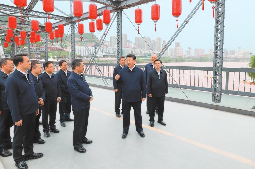 9月10日至13日,中共中央總書記、國家主席、中央軍委主席習(xí)近平在甘肅考察。這是11日下午,習(xí)近平在蘭州中山橋上了解黃河生態(tài)保護(hù)情況。新華社記者王曄