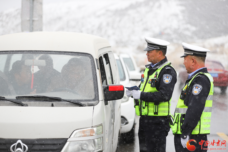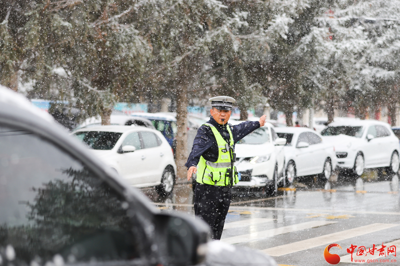 隴拍客丨民樂:雪紛飛 “警”相隨 交警守護(hù)平安出行路