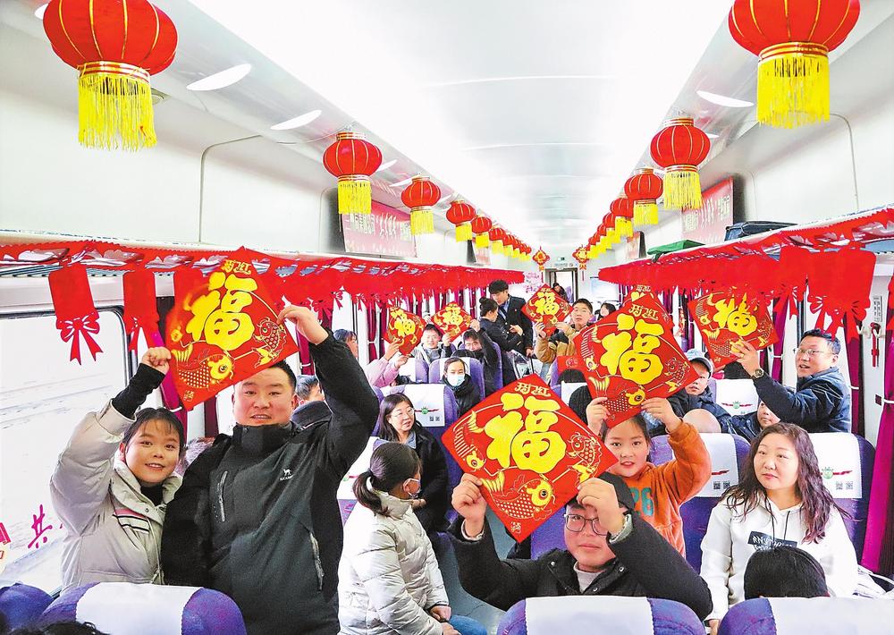 7504次“富民號”列車上張燈結(jié)彩,歡聲笑語。新春佳節(jié)來臨之際,無數(shù)人心懷著對家鄉(xiāng)的眷戀,踏上溫馨的回家之路。 新甘肅·甘肅日報記者丁凱攝