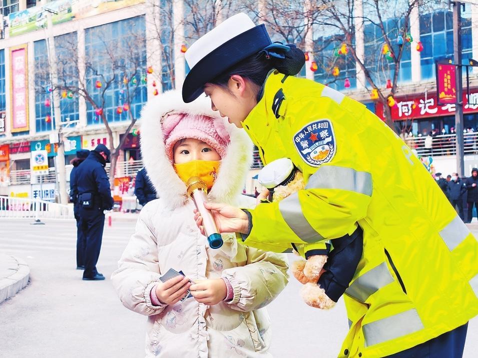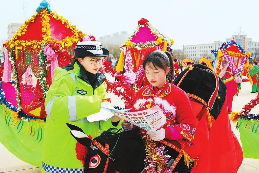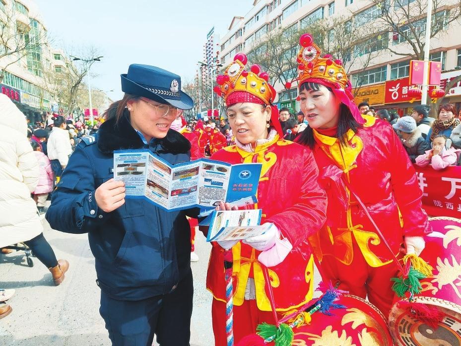 2月11日,合水縣公安民警巧借民俗活動(dòng)群眾聚集的有利時(shí)機(jī)開(kāi)展交通安全宣傳活動(dòng)。新甘肅·甘肅法治報(bào)通訊員李曉攝