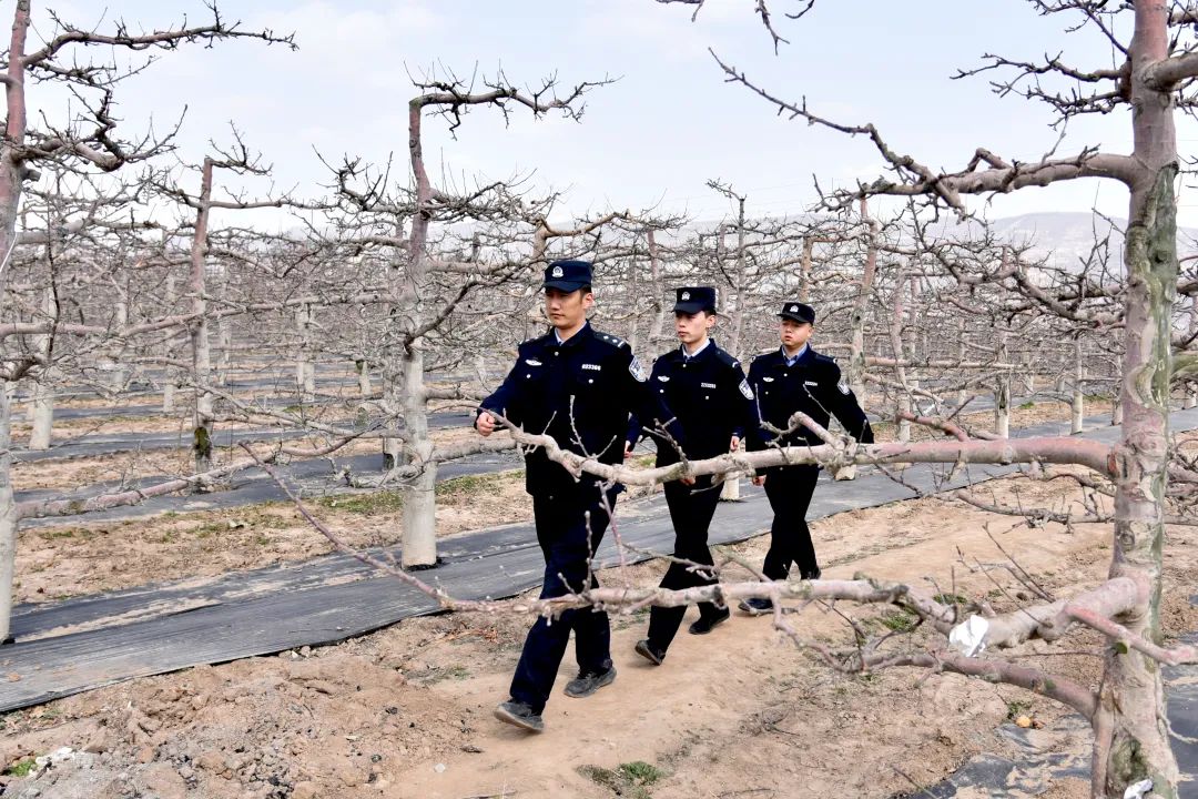 當(dāng)夕陽給蘋果樹鍍上金邊,結(jié)束巡邏的民警們又聚在派出所研判當(dāng)天收集的農(nóng)情。在這片被精心呵護(hù)的土地上,青綠色的嫩芽正醞釀著金秋的甜蜜,花牛派出所民輔警用腳步丈量果園,用責(zé)任護(hù)航平安。他們的身影與果農(nóng)們的笑臉交織在一起,構(gòu)成了一幅和諧美好的春耕畫卷。“一年之計(jì)在于春,春耕是農(nóng)民一年中最重要的時(shí)候,我們多跑跑腿、多操操心,果農(nóng)們就能安心種地、放心收成。”張?zhí)锝苄χf道。陽光下,他們的警徽熠熠生輝,映照出人民警察為人民的初心與擔(dān)當(dāng),而警民共繪的平安畫卷,早已融入隴原春深處的每一寸生機(jī)。
