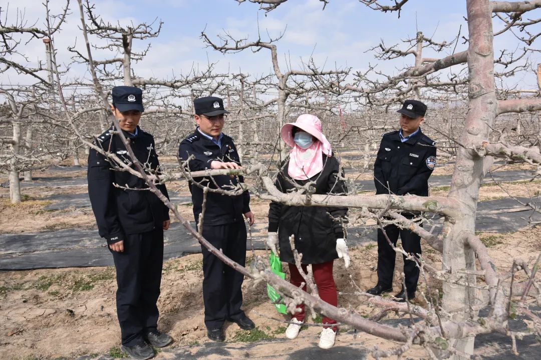 在這片希望的田野上,一抹抹藏藍(lán)色的身影穿梭于果園中,格外引人注目。“老武,今年果樹長勢不錯(cuò)??!不過最近天氣干燥,可得注意防火,別在地頭抽煙了!”民警張?zhí)锝芤贿呇策?,一邊笑著提醒正在修剪果樹的果農(nóng)武大叔。“放心吧,張警官,你們天天來巡邏,我們心里踏實(shí)多了!”武大叔擦了擦額頭的汗,連連點(diǎn)頭道。
