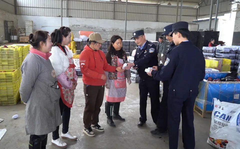 除了巡邏防控和矛盾調(diào)解,花牛派出所還開設(shè)了“田間課堂”,向果農(nóng)積極開展普法宣傳。在農(nóng)資市場休息區(qū),民警們拉起橫幅,向果農(nóng)們講解防盜、防騙、防火等安全知識(shí)。民警馬嘯不時(shí)翻看手機(jī)里的微信群說:“我們主動(dòng)將果農(nóng)納入微信群,不定時(shí)推送防騙知識(shí),果農(nóng)們遇到拿不準(zhǔn)的情況也會(huì)及時(shí)向我們咨詢。”