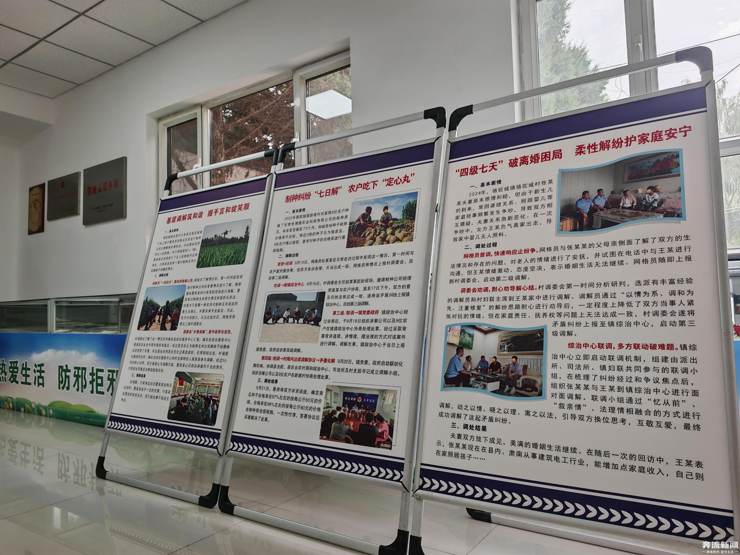 駱駝城鎮(zhèn)是高臺(tái)縣推行“四級(jí)七天”調(diào)解工作法的典型樣本。作為一個(gè)移民鄉(xiāng)鎮(zhèn),這里聚居著12個(gè)民族、來(lái)自5省8區(qū)的群眾。水事、農(nóng)事糾紛一度高發(fā)。