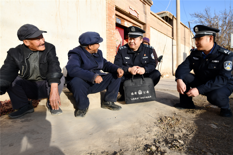▲臨澤縣公安局沙河派出所民輔警深入轄區(qū)村莊開展冬季用火、用電安全檢查,同時(shí)向群眾宣傳冬季生爐取暖的安全防范常識(shí)。(安學(xué)海 攝)