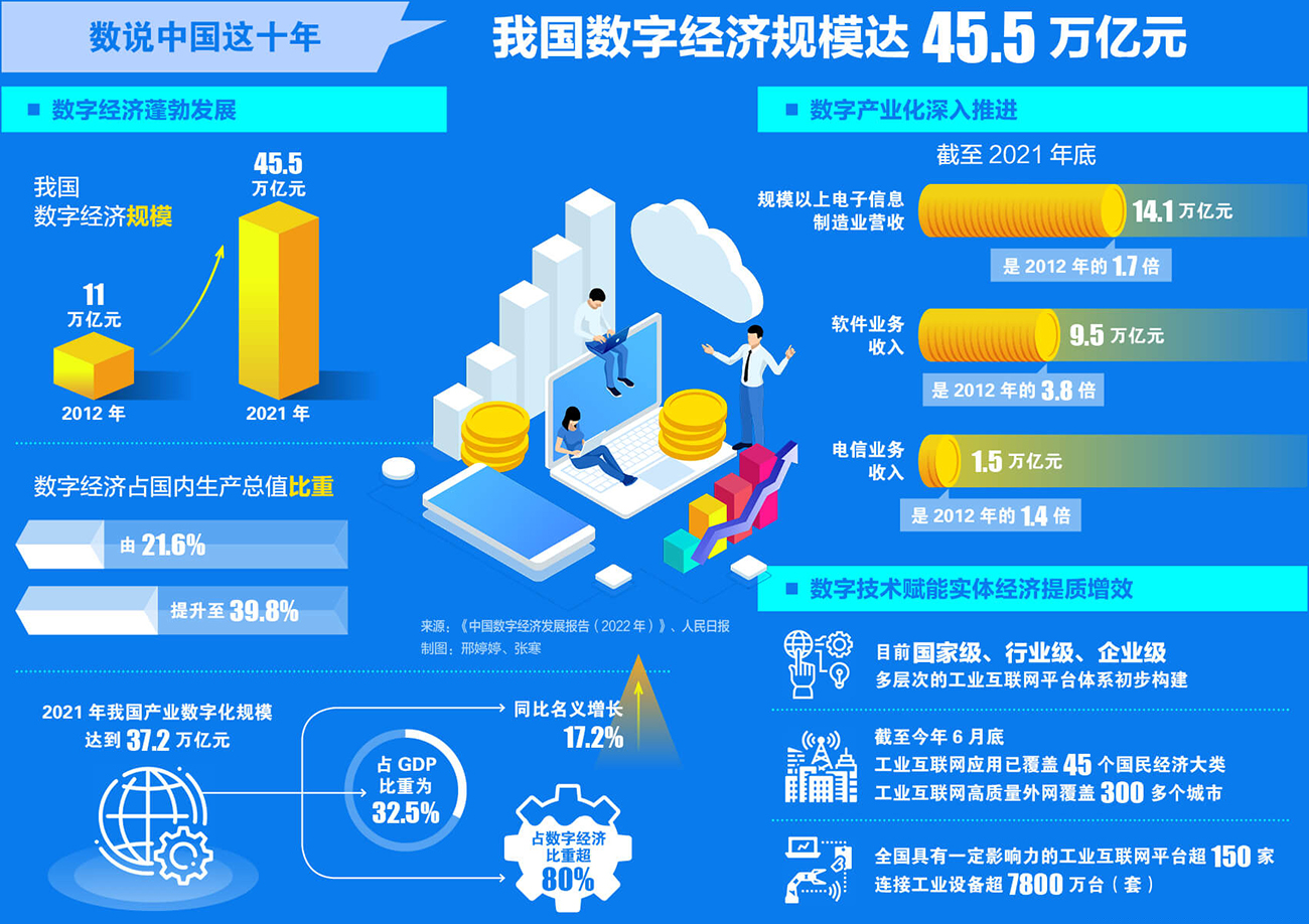 數(shù)說(shuō)中國(guó)這十年丨我國(guó)數(shù)字經(jīng)濟(jì)規(guī)模達(dá)45.5萬(wàn)億元