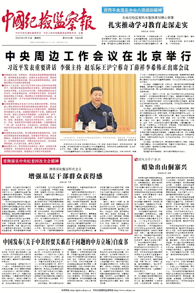 《中國紀(jì)檢監(jiān)察報(bào)》2025年4月10日第1版