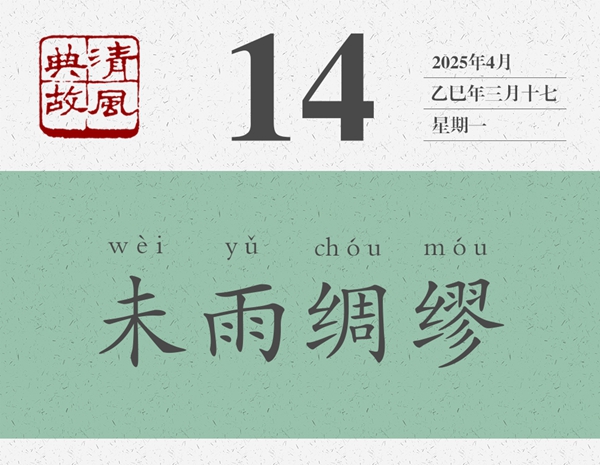 這是一首寓言詩。一般認(rèn)為,是周武王病故后,弟弟周公旦寫給周武王的兒子周成王的誡勉詩。時成王幼弱,周公旦以詩言志,以鳥為喻,表明自己對周成王的一片苦心,以及對國事的一片忠心。“迨天之未陰雨,徹彼桑土,綢繆牖戶”,便形象地表明了自己的一片苦心。后人遂以“未雨綢繆”為典,比喻凡事都應(yīng)提前做好準(zhǔn)備,以防事到臨頭難以應(yīng)對。《朱子家訓(xùn)》:“宜未雨而綢繆,毋臨渴而掘井。”