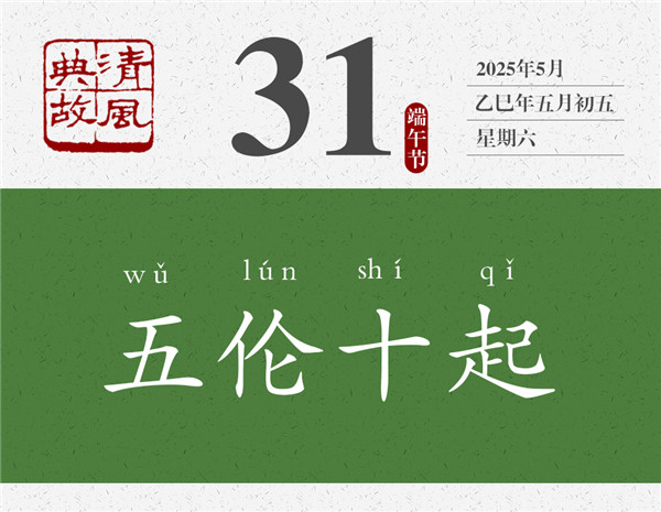 第五倫兄長的兒子經(jīng)常生病,他晚上要起來十次去照料,這說明他有私心。但是,他寧肯自己晚上起來十次去照料,也從未利用自己的職位或影響力讓別人代勞,這說明他公私分明。后人遂以“五倫十起”為典,形容于私有情分,于公有原則。李瀚《蒙求》:“劉整交質(zhì),五倫十起。”劉整,南朝齊梁時人,任職中軍參軍,為人刻薄而貪婪。有一次,侄子在他家里住了十二天,他便親自上門去向寡嫂討米、索償飯費,寡嫂出門未歸,他竟然拿走了寡嫂家的車帷以作抵押。
