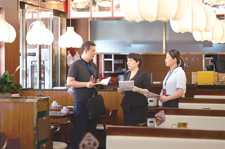 河南省漯河市郾城區(qū)紀委監(jiān)委圍繞公款吃喝、違規(guī)接受管理服務(wù)對象宴請等違反中央八項規(guī)定精神問題開展監(jiān)督檢查,一嚴到底狠剎歪風(fēng)邪氣。圖為近日,該區(qū)紀檢監(jiān)察干部在轄區(qū)某飯店了解相關(guān)情況。王曉 攝