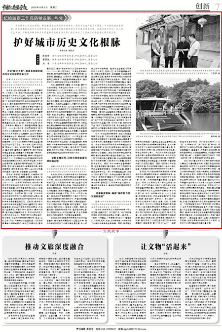 景國(guó)誠:我們把體制機(jī)制建設(shè)作為破解保護(hù)與發(fā)展難題的關(guān)鍵點(diǎn),將制度嚴(yán)起來、合力聚起來、紀(jì)律挺起來,著力守住歷史文化的“根”與“魂”,為城市高質(zhì)量發(fā)展注入底蘊(yùn)與活力。歷史文化保護(hù)必須從源頭立規(guī)矩、定邊界。我們及時(shí)提出加強(qiáng)文化遺產(chǎn)保護(hù)傳承領(lǐng)域監(jiān)督問責(zé)的建議,推動(dòng)制定出臺(tái)《關(guān)于進(jìn)一步加強(qiáng)歷史文化名城保護(hù)的意見》等系列政策文件,形成“市委牽頭抓總、人大立法保障、政府具體實(shí)施、紀(jì)委全程監(jiān)督”的工作格局,明確“誰來保護(hù)、保護(hù)什么、怎么保護(hù)”。歷史文化保護(hù)涉及規(guī)劃、住建、文旅、文物等多個(gè)部門,我們充分發(fā)揮監(jiān)督貫通協(xié)調(diào)機(jī)制作用,從壓實(shí)屬地責(zé)任和協(xié)同責(zé)任上雙向發(fā)力,把檢查、保護(hù)、監(jiān)管等全過程責(zé)任分解到縣鄉(xiāng)兩級(jí)黨委政府、具體行業(yè)部門,解決了各管一段、銜接不暢、推諉扯皮等職責(zé)不明晰的問題,建立“聯(lián)席會(huì)商+問題清單+跟蹤問效”機(jī)制,推動(dòng)歷史文化街區(qū)保護(hù)和文物保護(hù)問題整改,用制度把“散力”擰成“合力”。制度的生命力在于執(zhí)行。我們綜合運(yùn)用深入一線“挖”、巡察審計(jì)“移”、部門聯(lián)動(dòng)“查”等方式,開展歷史文化保護(hù)專項(xiàng)檢查,對(duì)重點(diǎn)線索、疑難案件掛牌督辦、直查直辦,嚴(yán)肅查處突出問題,既追究直接責(zé)任,也倒查監(jiān)管責(zé)任,對(duì)已整改問題開展“回頭看”,以監(jiān)督執(zhí)紀(jì)提升工作質(zhì)效,實(shí)現(xiàn)“保護(hù)有力度、發(fā)展有溫度”的良性循環(huán)。