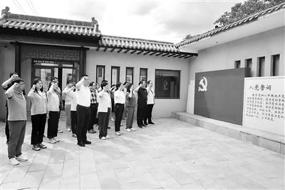 近日,山西省紀(jì)委監(jiān)委機(jī)關(guān)部分黨員在晉綏八分區(qū)(專署)舊址開展“傳承紅色基因,砥礪初心使命”主題黨日活動。圖為黨員重溫入黨誓詞。王鵬波 攝
