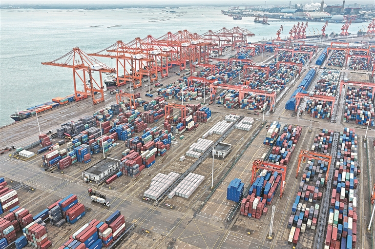 時(shí)下,廣西北部灣港欽州港區(qū)碼頭橋吊、龍門吊等自動(dòng)化設(shè)備有序運(yùn)轉(zhuǎn),車輛來(lái)往穿梭,港口貨運(yùn)呈現(xiàn)一派繁忙景象。圖為3月4日拍攝的廣西北部灣港欽州港區(qū)碼頭。新華社記者 周華 攝