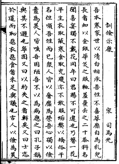 北宋司馬光的名篇《訓(xùn)儉示康》,教導(dǎo)其子崇儉戒奢,選自江西省圖書館藏清代《古文輯略》。圖片來源:中華古籍智慧化服務(wù)平臺(tái)
