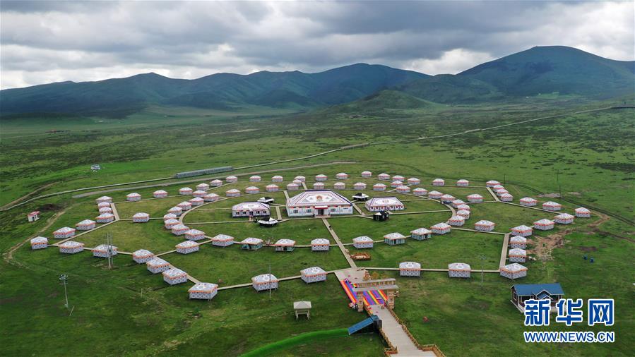 這是6月20日拍攝的甘南藏族自治州碌曲縣尕海鎮(zhèn)尕秀村帳篷城景區(qū)(無(wú)人機(jī)照片)。 新華社記者 陳斌 攝