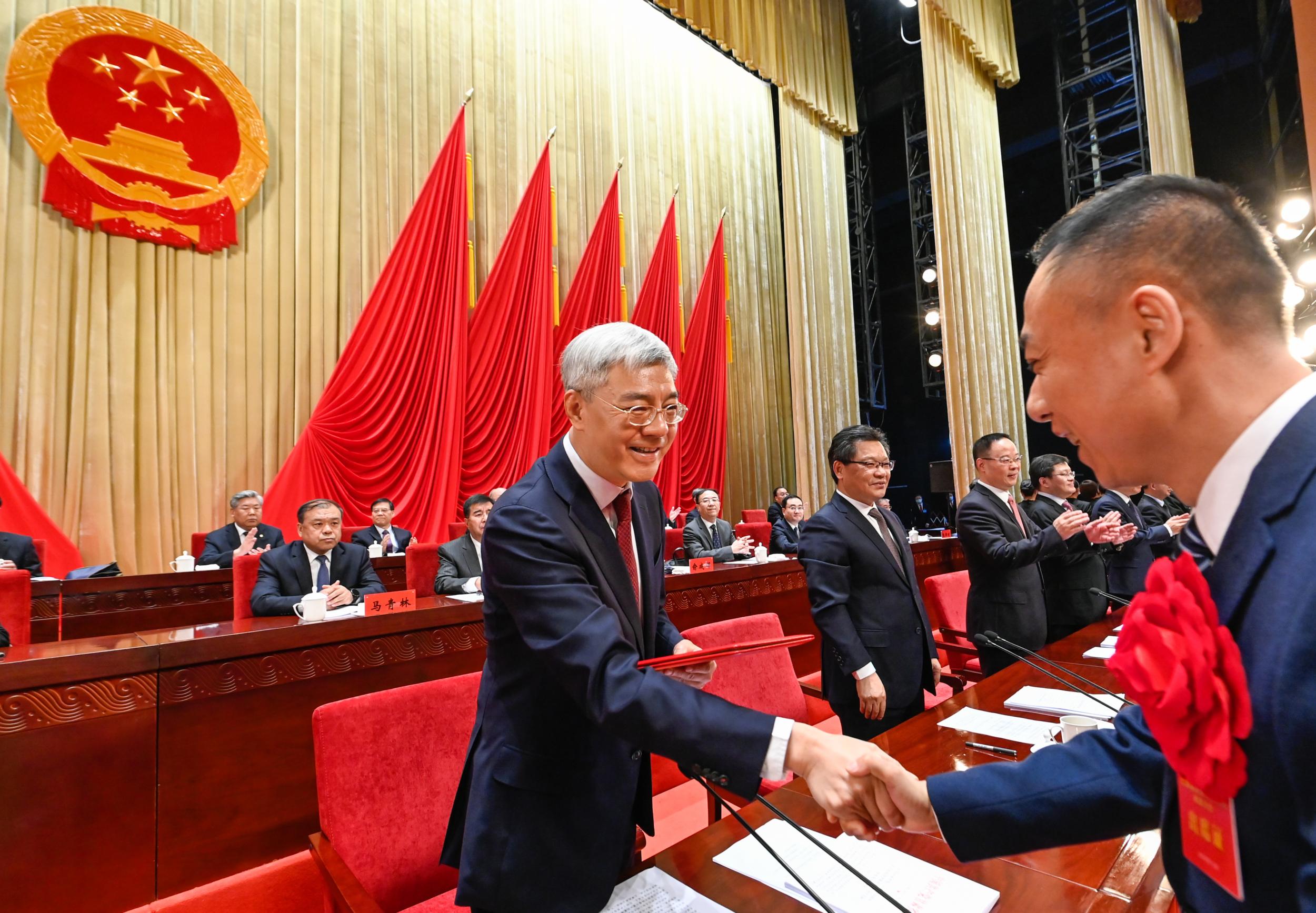 尹弘、任振鶴等向受到表彰的先進個人、先進集體代表頒獎。