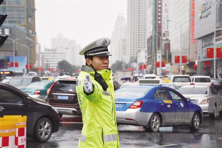 蘭州交警雨天指揮交通 葛 強(qiáng) 攝