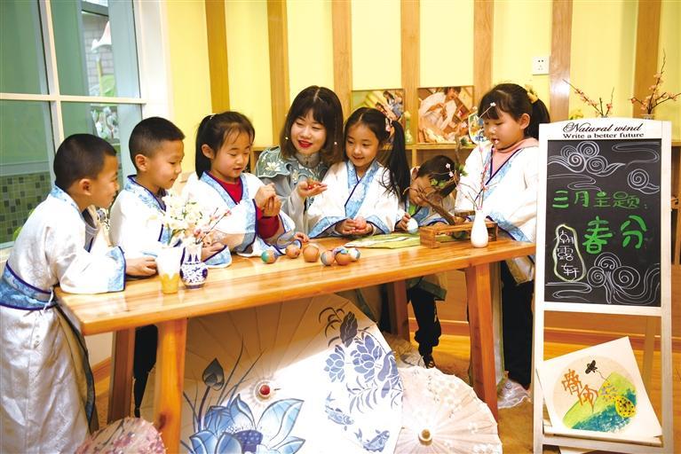 3月21日,農歷二十四節(jié)氣中的春分,民間有“春分到,蛋兒俏”的諺語。蘭州城關區(qū)和政路幼兒園開展了“春分立蛋,童趣迎春”趣味民俗活動,老師指導小朋友玩“立蛋”游戲,與孩子們一起手繪彩蛋,喜話民俗。據(jù)史料記載,“春分立蛋”的傳統(tǒng)起源于4000年前的中國,意在慶祝春天的來臨。