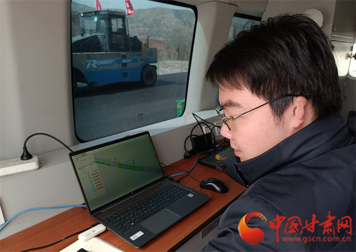 中國甘肅網(wǎng)4月6日訊(本網(wǎng)記者 宋芳科 實習生 王文博)“駕駛員可以休息一下,下面由無人駕駛集群智能化攤鋪路面。”4月6日上午,甘肅路橋安臨路面二標項目瀝青路面鋪設現(xiàn)場,無人駕駛的鋪路機組成集群駛?cè)胧┕がF(xiàn)場,在無駕駛員操作的情況下智能前行,實現(xiàn)公路鋪設碾壓一體化成型,而指揮這些龐大工程車輛的僅僅是一名技術(shù)人員和一臺筆記本電腦,真正實現(xiàn)了路面鋪設智控化。