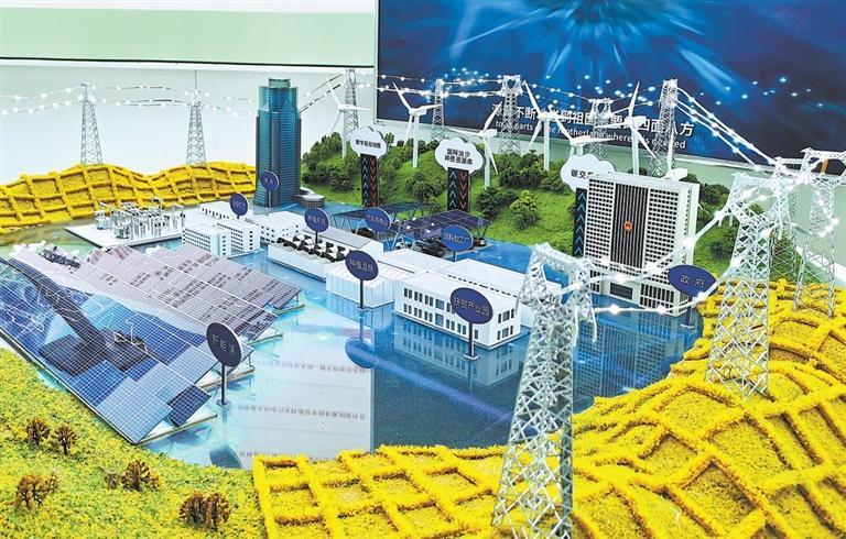 在國家電網(wǎng)展館展出的甘肅省武威市古浪縣八步沙“電沙成金”——沙漠能源生態(tài)圈品牌。本版圖片均由新甘肅·甘肅日報記者王占東攝